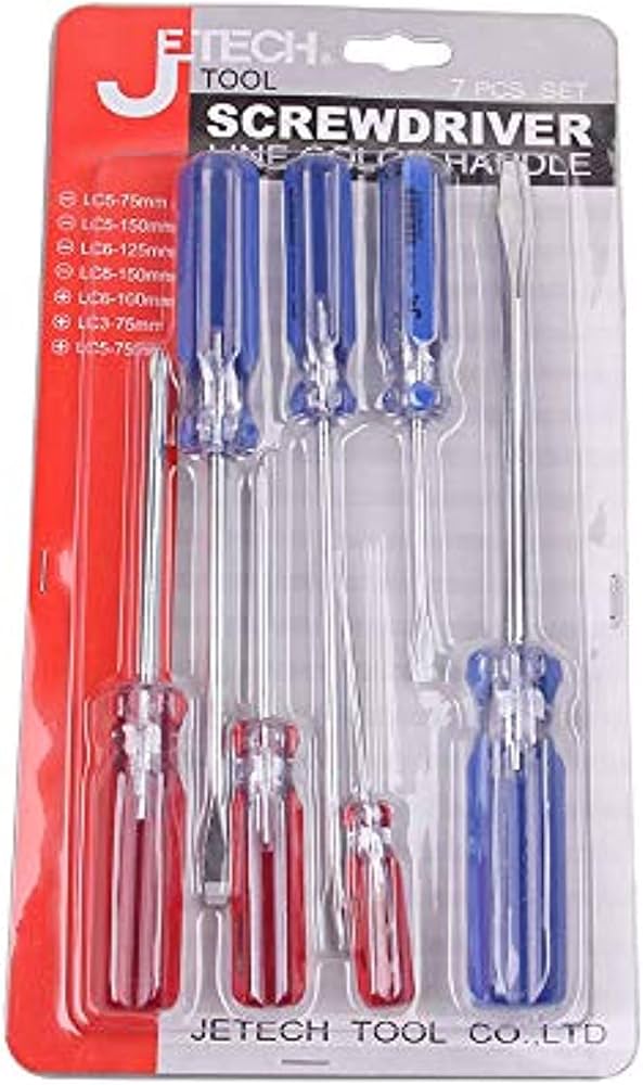 - The LC7PCS/SET generally includes seven screwdrivers with different types and sizes, including various Phillips, flathead, and possibly Torx or other specialty heads. This variety covers a broad range of applications.